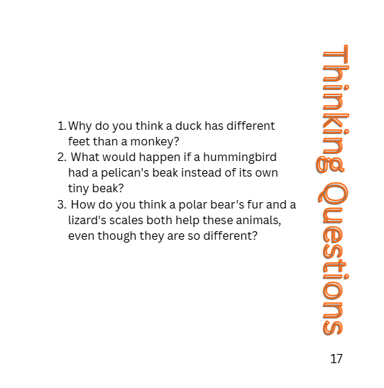 This comprehensive resource combines reading, science exploration, and hands-on discovery to help young learners understand the amazing ways animals are perfectly designed for their habitats. Perfect for classroom use, homeschooling, or family learning adventures!