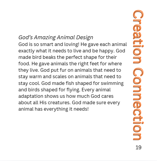 š¦ Keywords highlighted throughout for vocabulary building š¤ Thinking Questions that spark curiosity and discussion šļø Hands-On Activities for real-world exploration šØ Creation Connections linking learning to God's World