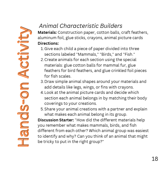 This comprehensive resource combines reading, science exploration, and hands-on discovery to help young learners understand the amazing animals that share our world. Perfect for classroom use, homeschooling, or family learning adventures!