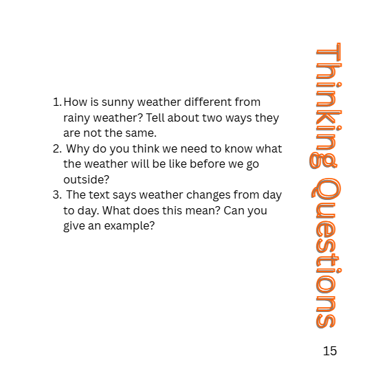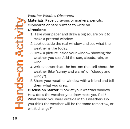 This comprehensive resource combines reading, science exploration, and hands-on discovery to help young learners understand the amazing world of weather and how it affects our daily lives. Perfect for classroom use, homeschooling, or family learning adventures!